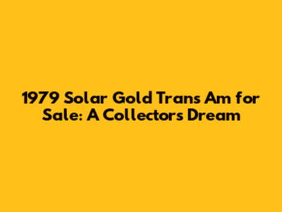 • Investment Potential: Classic cars, especially those with a strong following, have proven to be a solid investment over time. The value of a well-maintained 1979 Solar Gold Trans Am has steadily increased in recent years, and experts predict that this trend will continue. Collectors see these cars not only as a source of enjoyment but also as a tangible asset that can appreciate in value.