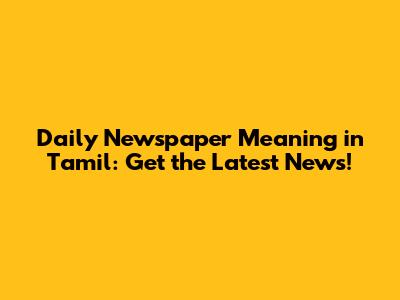 Daily Newspaper Meaning In Tamil: Get The Latest News!