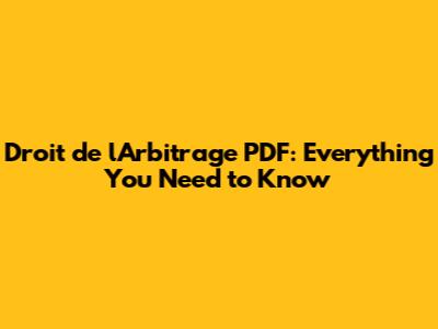 Droit De L'Arbitrage PDF: Everything You Need To Know
