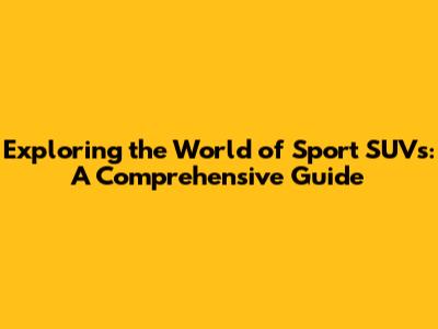 Exploring The World Of Sport SUVs: A Comprehensive Guide