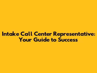 Intake Call Center Representative: Your Guide To Success