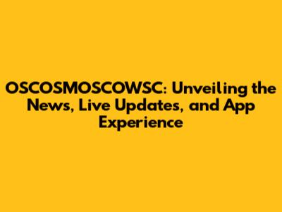 OSCOSMOSCOWSC: News, Live Updates, And App Insights