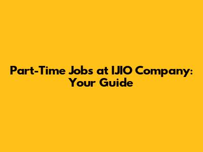 Part-Time Jobs At IJIO Company: Your Guide