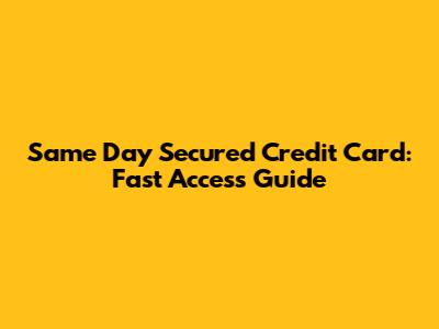 Same Day Secured Credit Card: Fast Access Guide